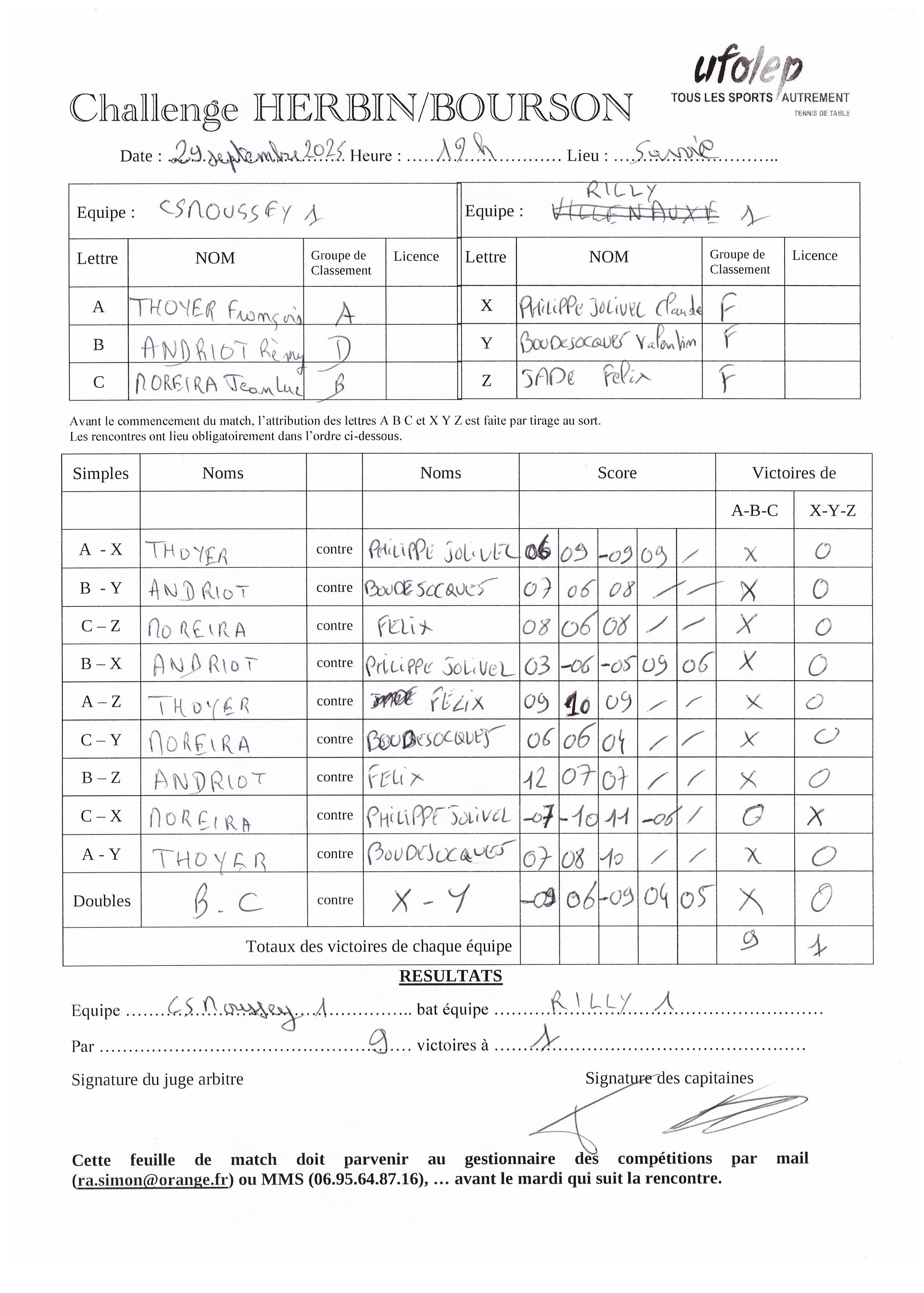 feuilles de match Ufolep