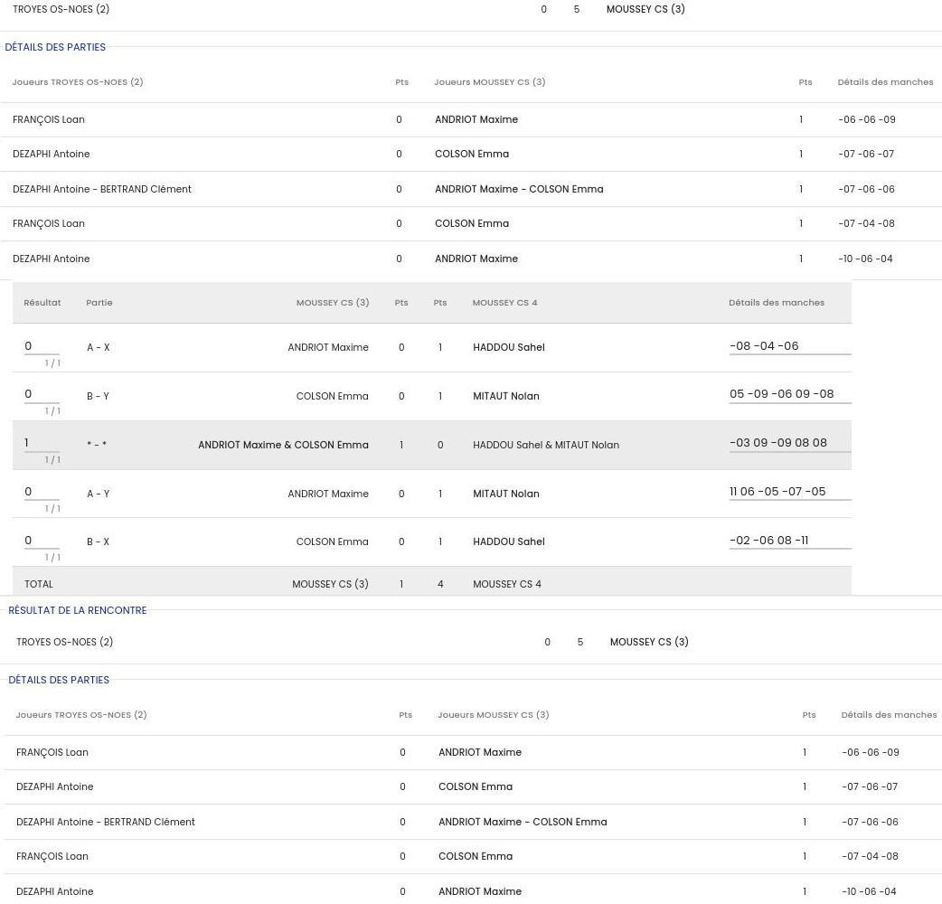 feuilles de match Ufolep