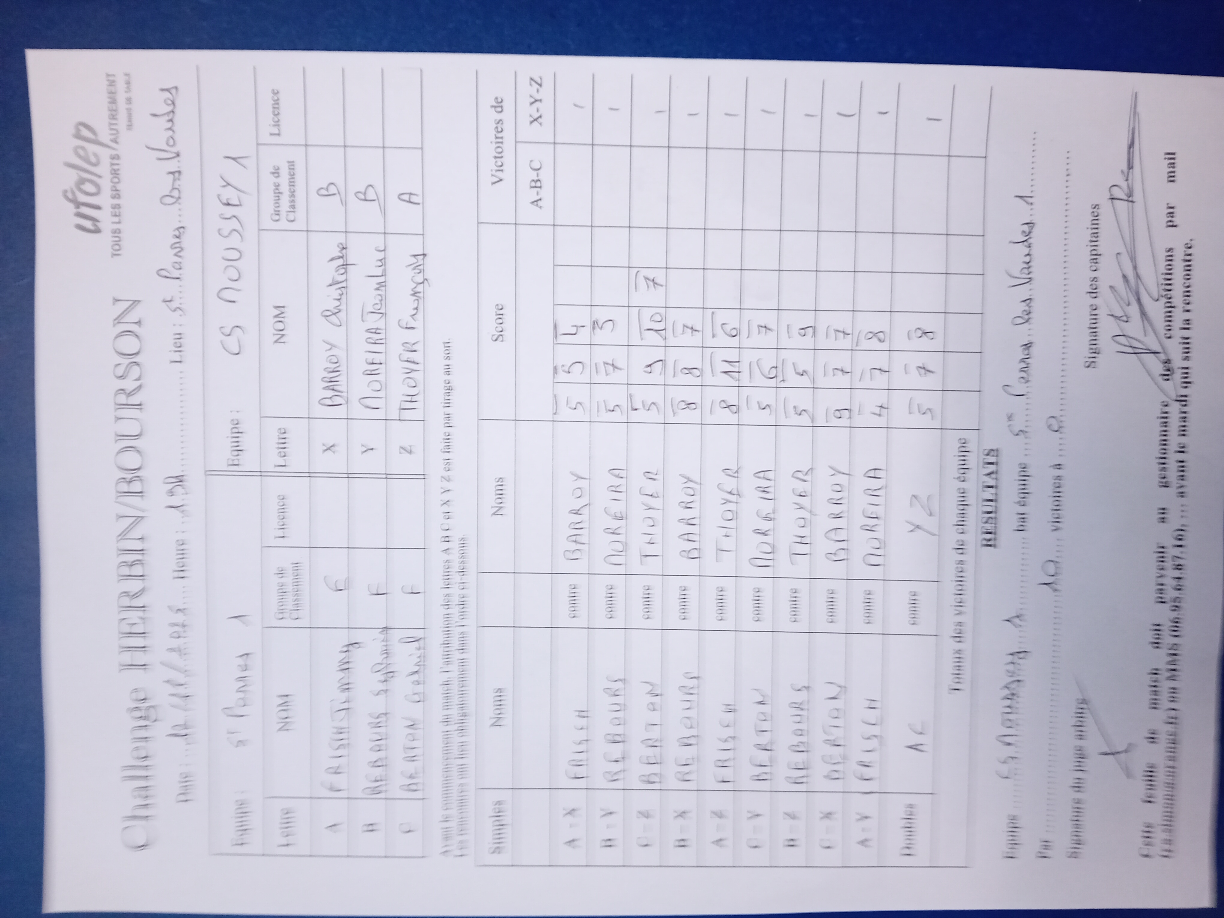 feuilles de match Ufolep